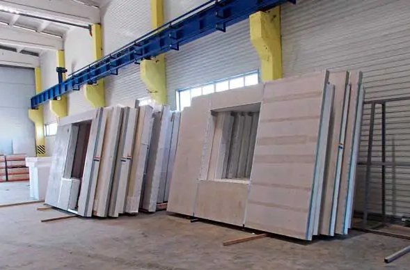 Заводская сборка сэндвич-панелей позволяет заранее согласовать количество и конфигурацию проёмов под двери, окна и коммуникации. Это сильно сокращает время монтажа на объекте и снижает количество обработки на месте. Порядок логистики: производство → маркировка → упаковка на поддоны → транспортировка автотранспортом с учётом длинны (максимальная транспортируемая длина обычно 13,6 м) → разгрузка спецтехникой.